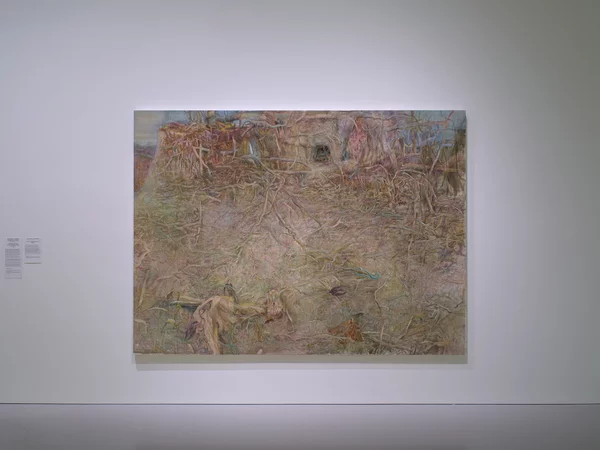 The work is part of the We Got Front-Row Tickets series, in which the theme of the absence of the human figure in landscapes is further developed. At the time of its creation, the artist was unable to have direct contact with Ukrainian land, however, distance can also be fruitful for critical reflection. We observe the war-affected landscape and the war itself from different distances. The landscape simultaneously serves as the backdrop for our actions, the actions themselves, and the protagonists. Now, with the complete impossibility of setting foot on these lands, all that remains is to closely observe the slow and brutal unfolding of a plot in which we no longer play a part.